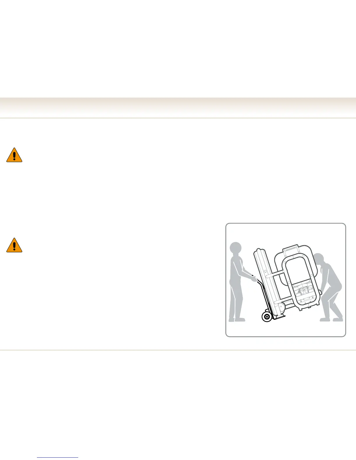The equipment must be moved with great care, due to the risk of it tipping over.