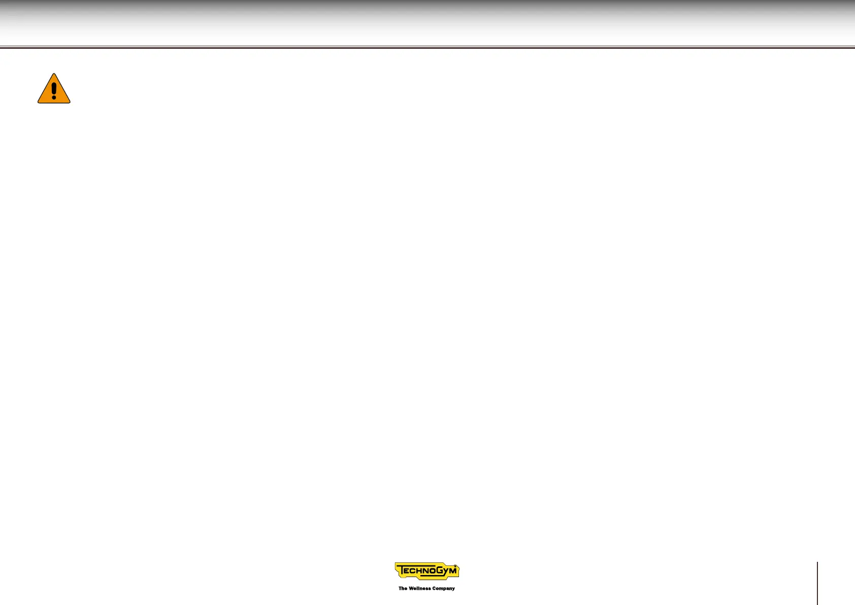 For maintenance actions not described in this manual, call in the Technogym Technical Service.