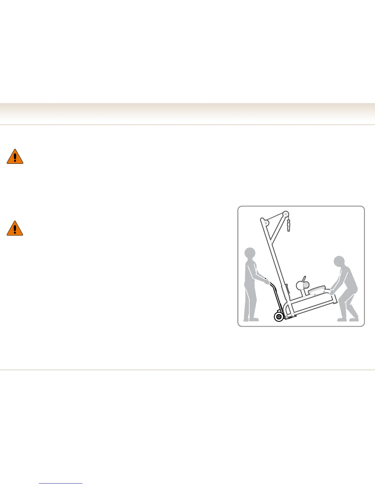 The equipment must be moved with great care, due to the risk of it tipping over.