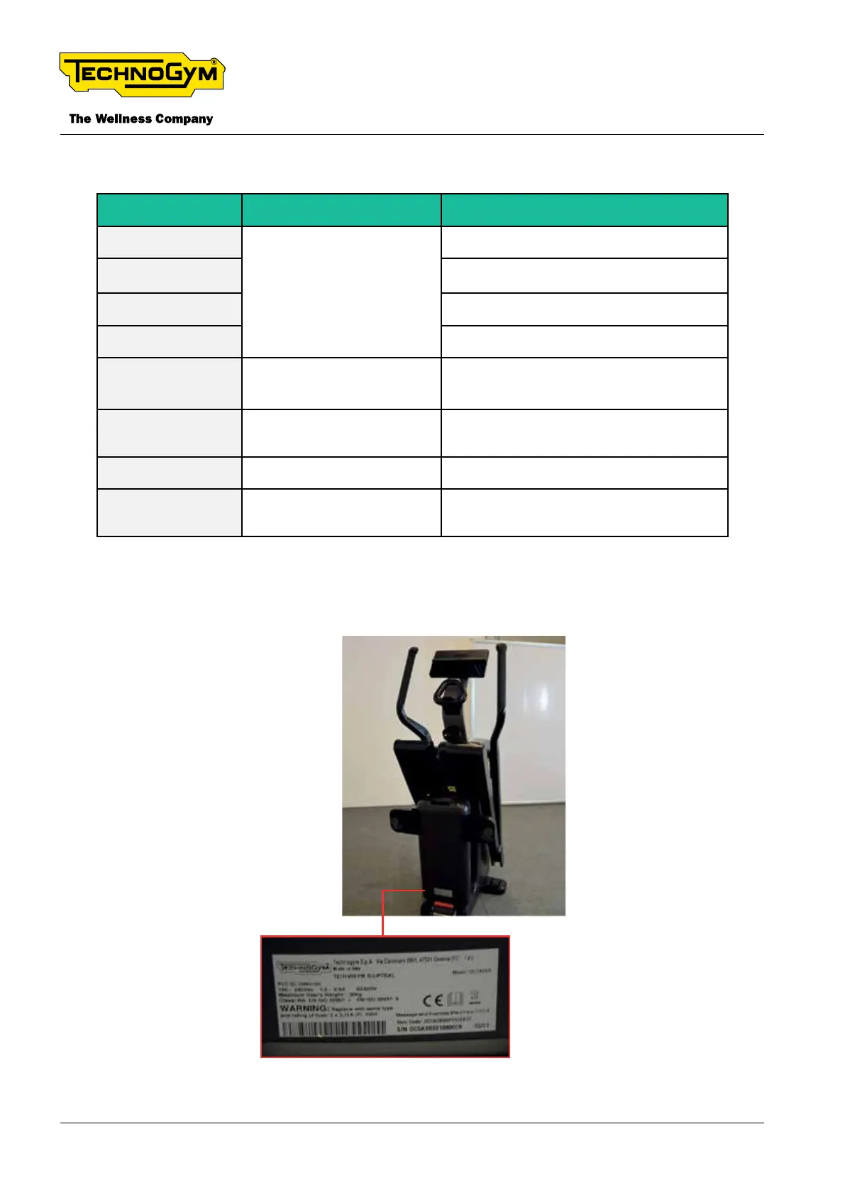 TECHNOGYM ELLIPTICAL Technical Service Guide