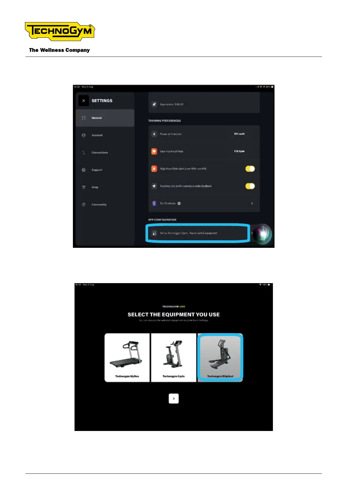 the equipment is set as a dierent equipment (e.g. Technogym Cycle) select “Set as Techno-