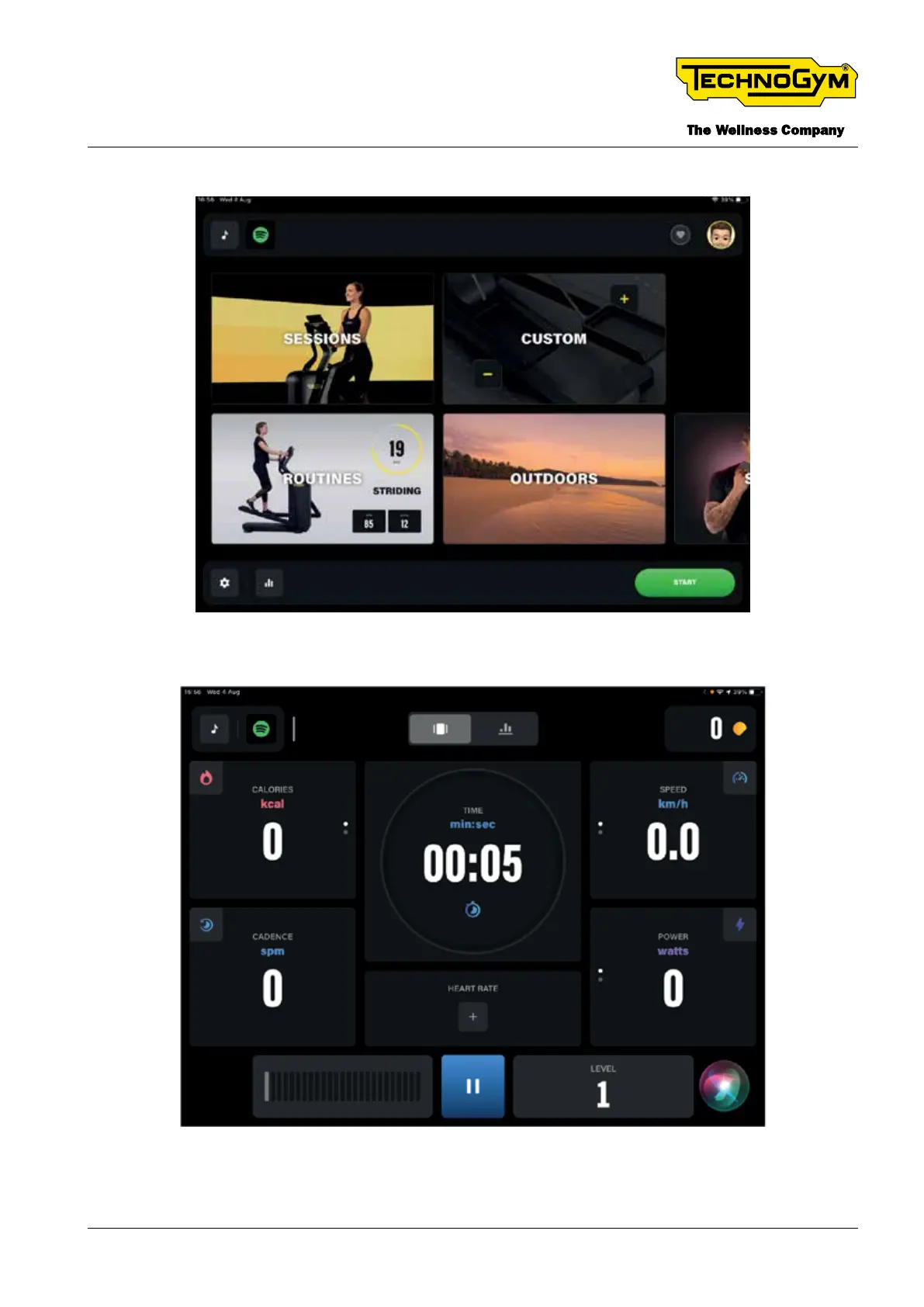 At the end of connection it’s possible to start the workout or click on the relative sections.