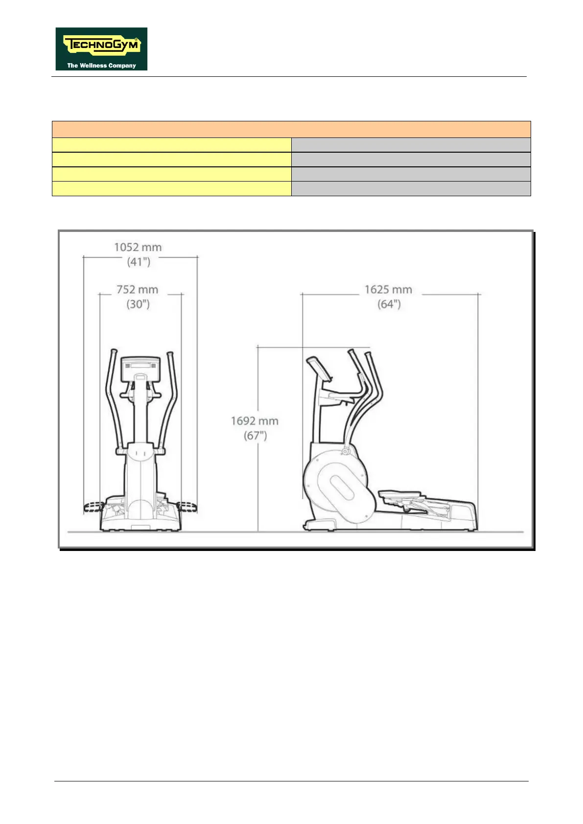 Technogym EXCITE+ - Mechanical Characteristics; Overall Dimensions