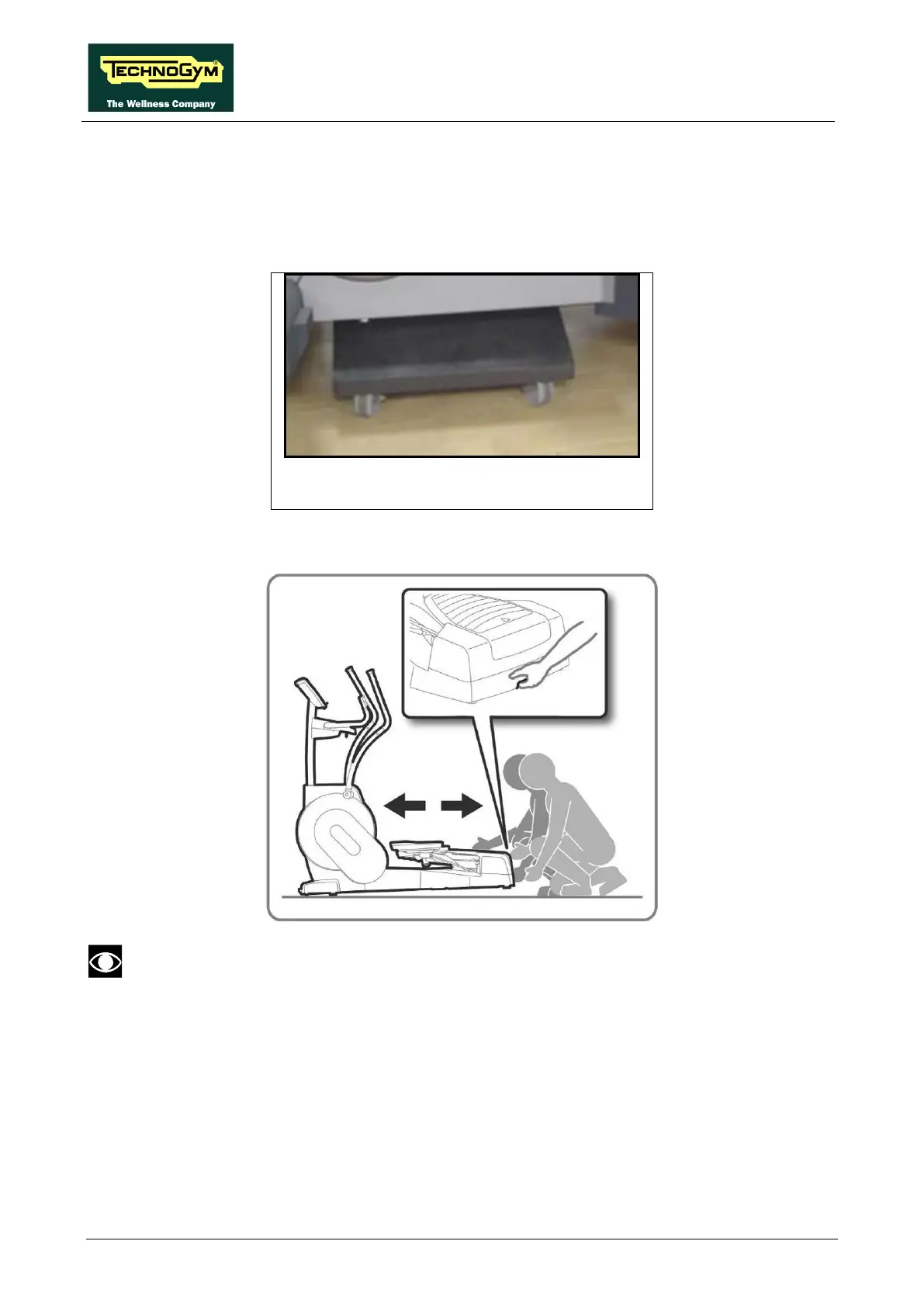 2. Move the equipment using the front wheels, as shown below:
