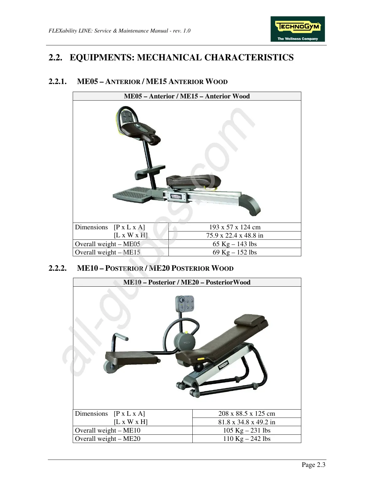 2.2. EQUIPMENTS: MECHANICAL CHARACTERISTICS