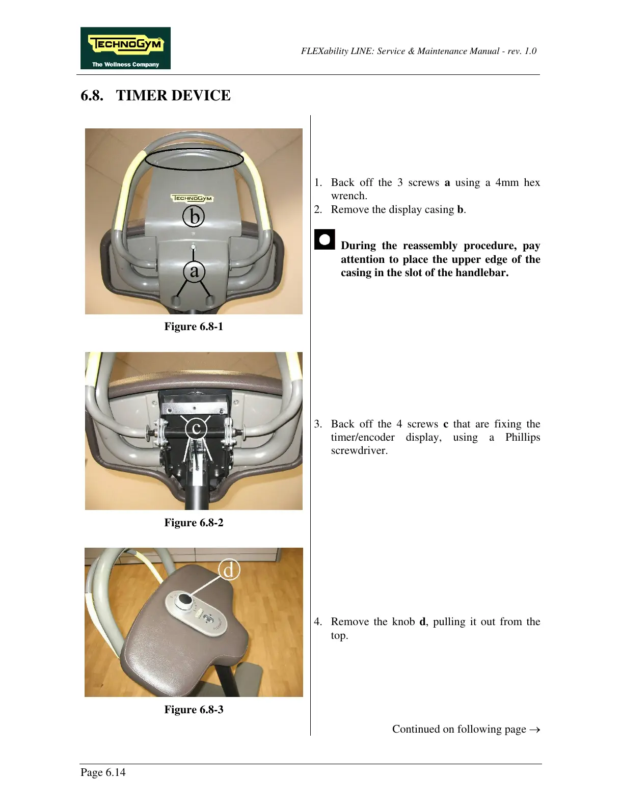 4. Remove the knob d, pulling it out from the