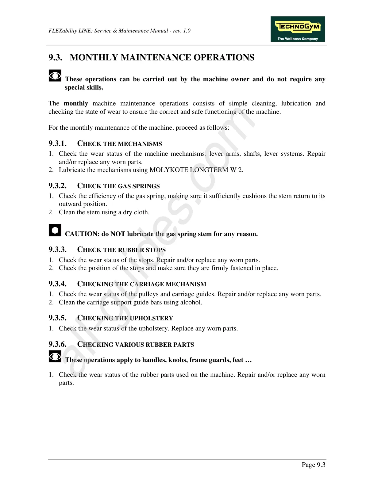 9.3. MONTHLY MAINTENANCE OPERATIONS
