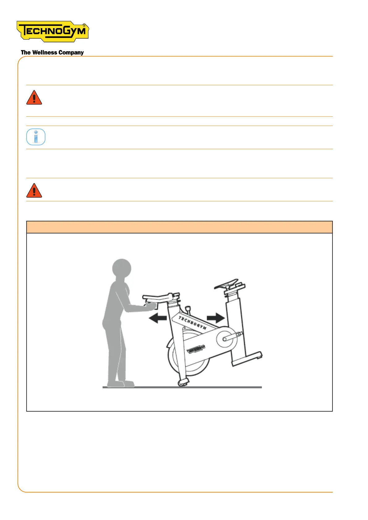 The equipment has xed front wheels. To move it, lift it slightly as shown in the gure, and push
