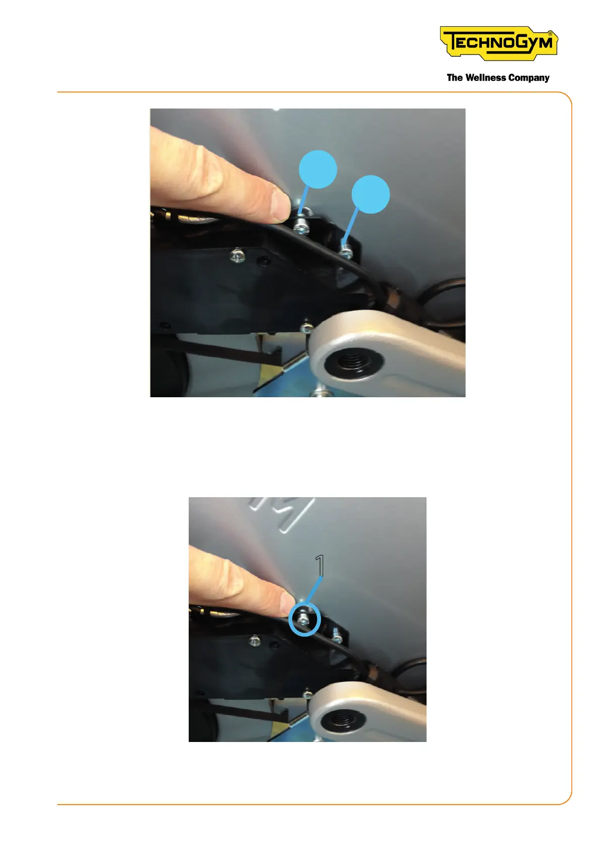 3. To reinstall the plate, fasten the two plate fastening and regulation screws (1) and (2) of the