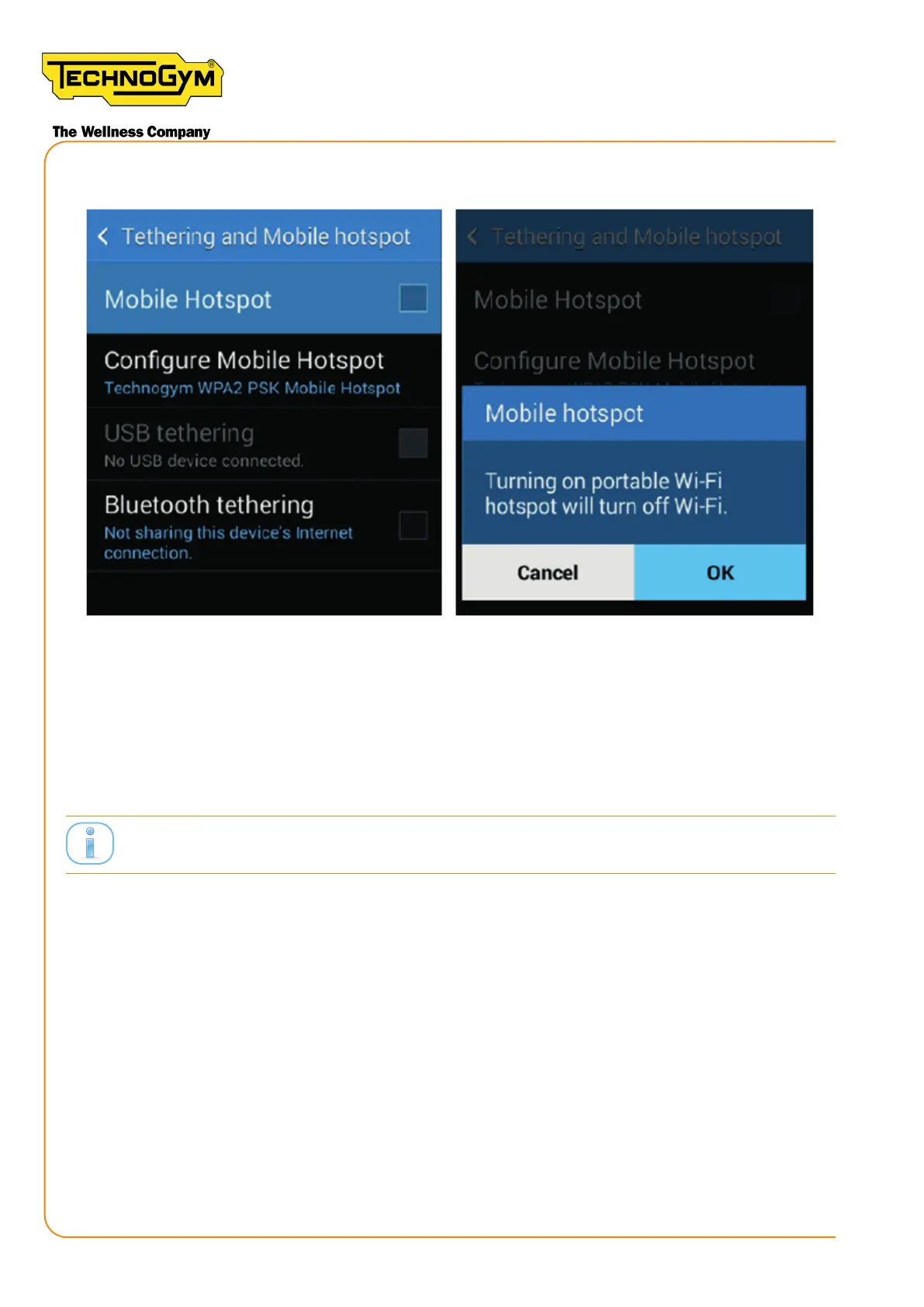 12- Through the ‘Equipment Set-Up’ App, congure the console of the Group Cycle for the Wi-Fi
