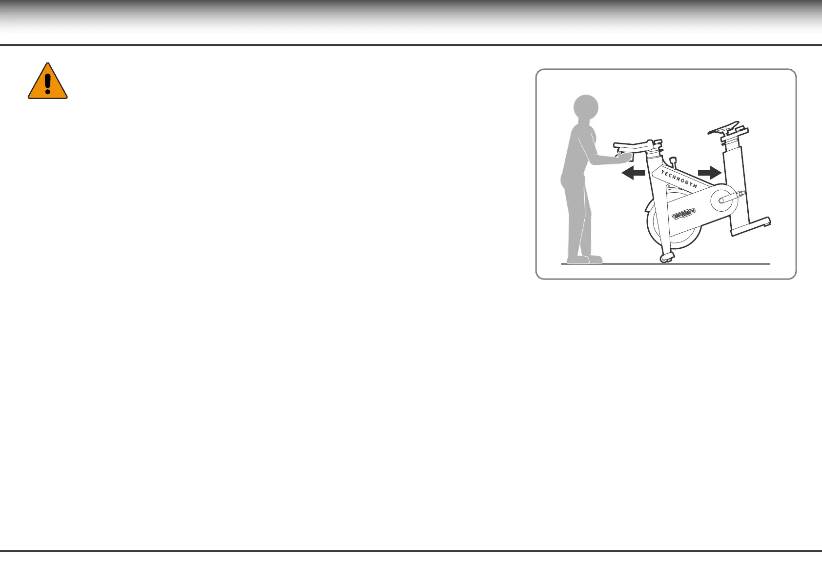 The equipment has two xed front wheels. To move the equipment, lift it up slightly, as shown in