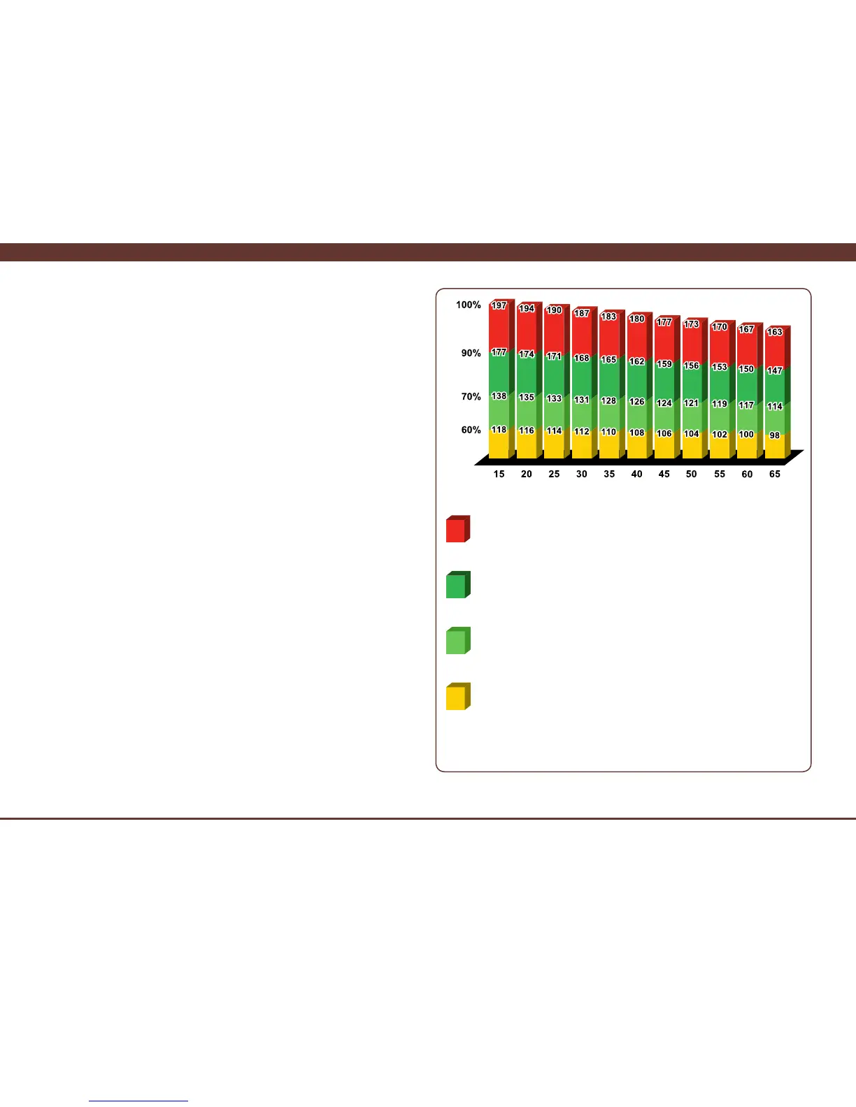 To read the graph, simply nd your age on the horizontal axis and scan up the