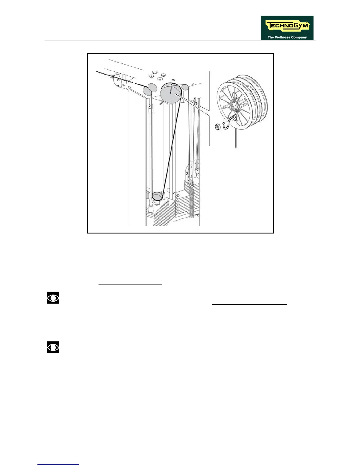 19. Rise again upward, to the cam and pass the cable into the less deep hole on its external side.