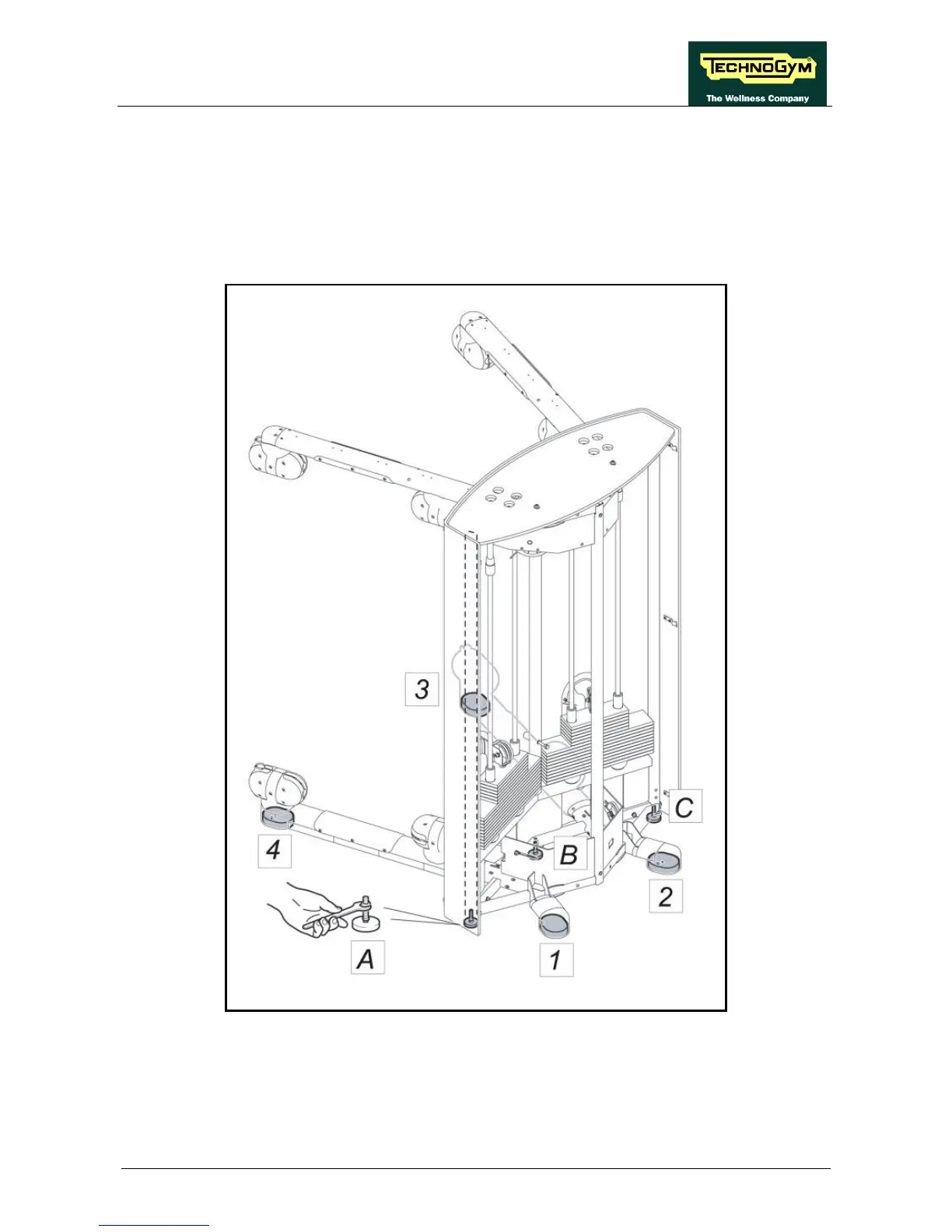 1. It is possible to adjust the feet height of the machine: n° 1-2 on the lower rear arm and n° 3-4 on