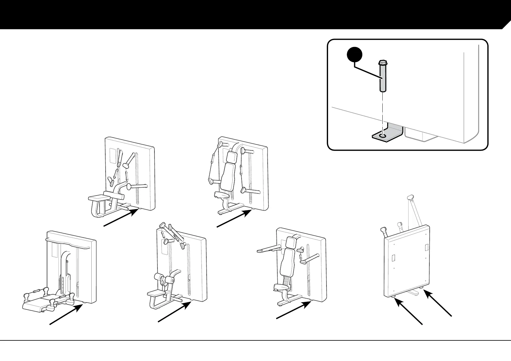 To anchor the equipment to the oor, follow the same procedure for both sides of the