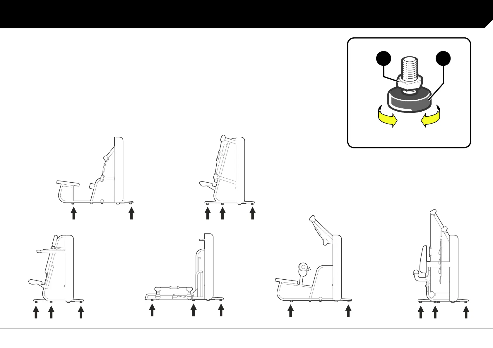 Screw or unscrew the foot (A) until the frame is in a stable position.