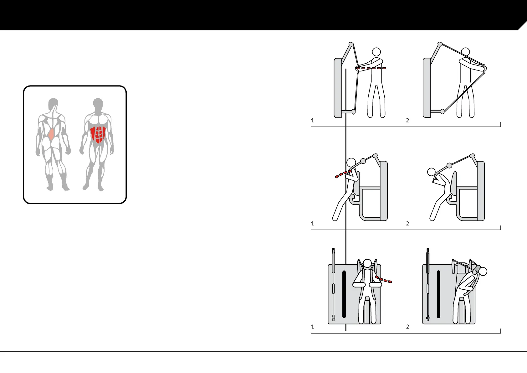 Technogym KINESIS STATIONS - USING THE PRODUCT - CORE EXERCISES; Trunk rotation - both sides; Crunch - supported seat; Oblique crunch - supported seat