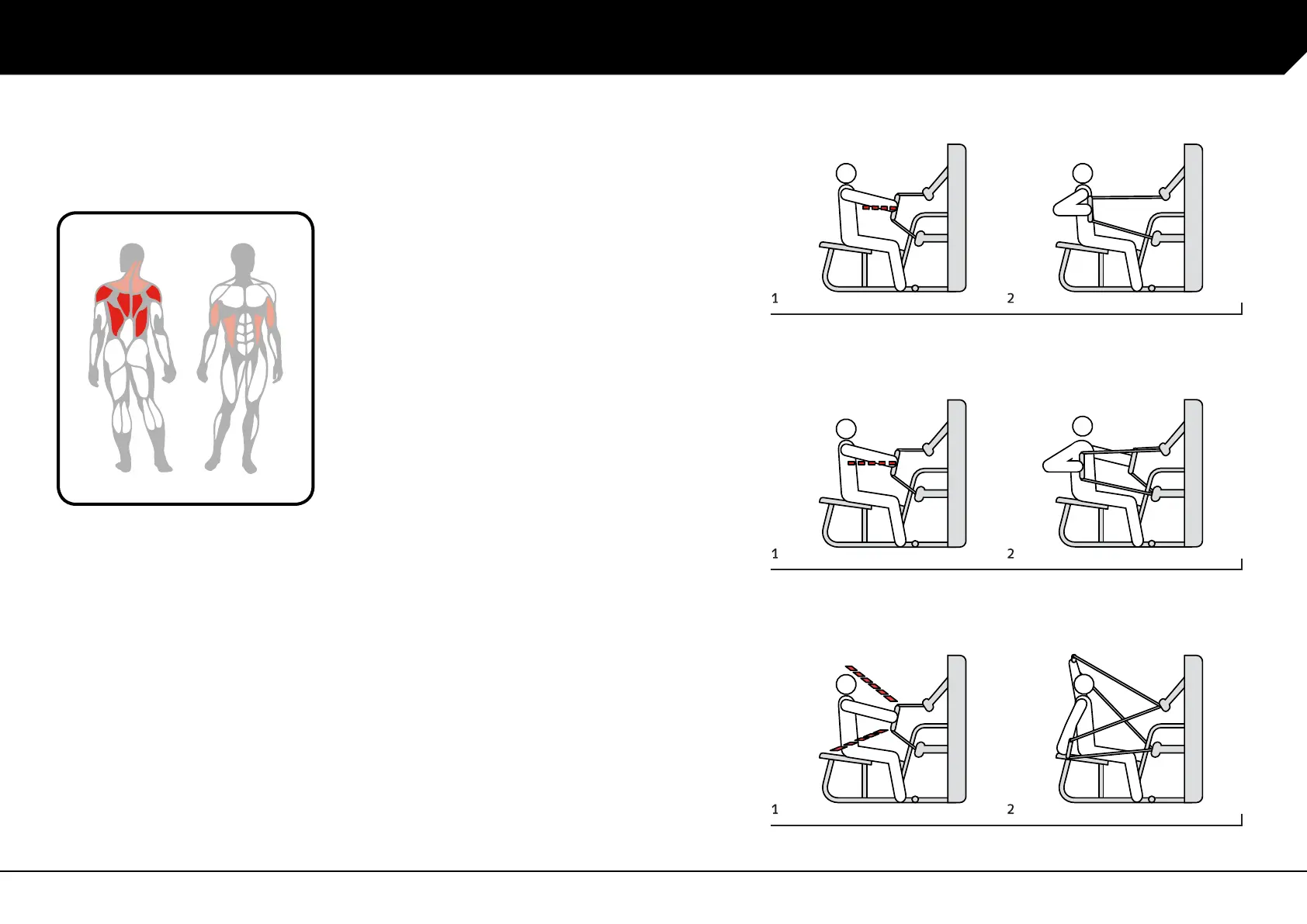 Technogym KINESIS STATIONS - USING THE PRODUCT - LOW PULL EXERCISES; Low row seated; Low row - reciprocal - seated; Combo reverse fly - alternating arms