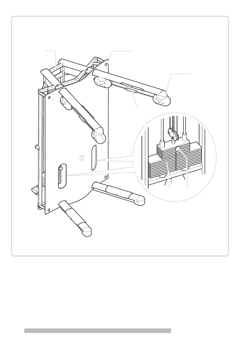 guides by means of a cable. A pin (F) is used to select the workload, to adjust the amount of