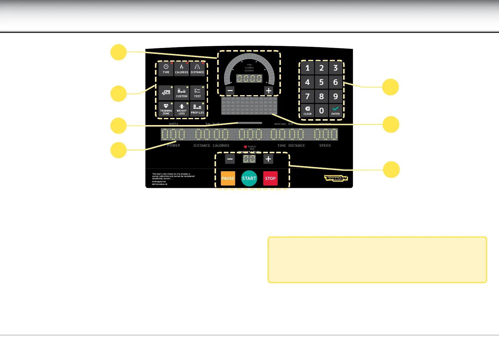 A Function keys for workout or test selection. If the corresponding LED lights up, this key is active or the corresponding exercise is in progress.