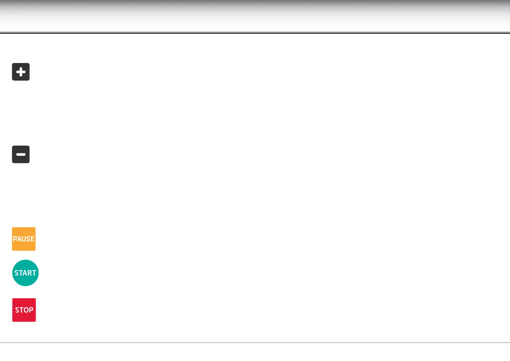 Stops the exercise for a short pause. During the pause, all the control panel settings are blocked and the only keys enabled are the START (restart)