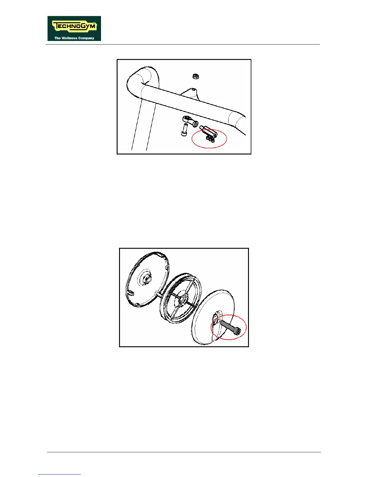 The screws of the pulleys, highlighted in grey and circled in the figure below, must be carefully