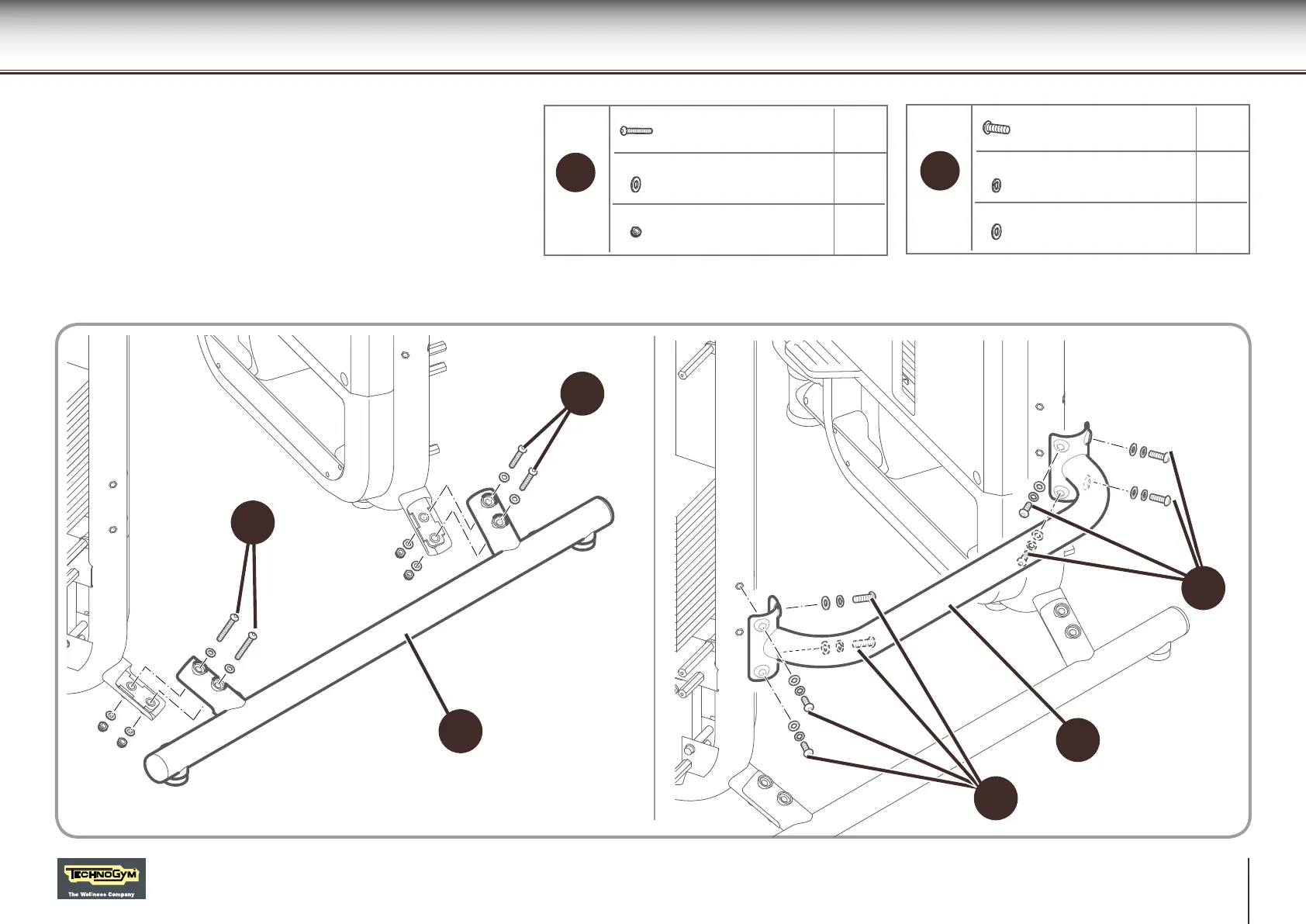 Secure the lower crosspiece (G) with the 4 screws (I); then