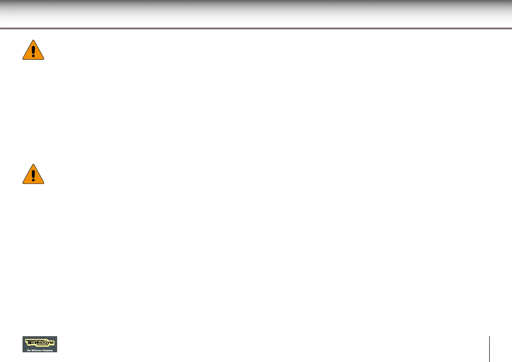 For maintenance actions not described in this manual, call in the Technogym Technical Service.