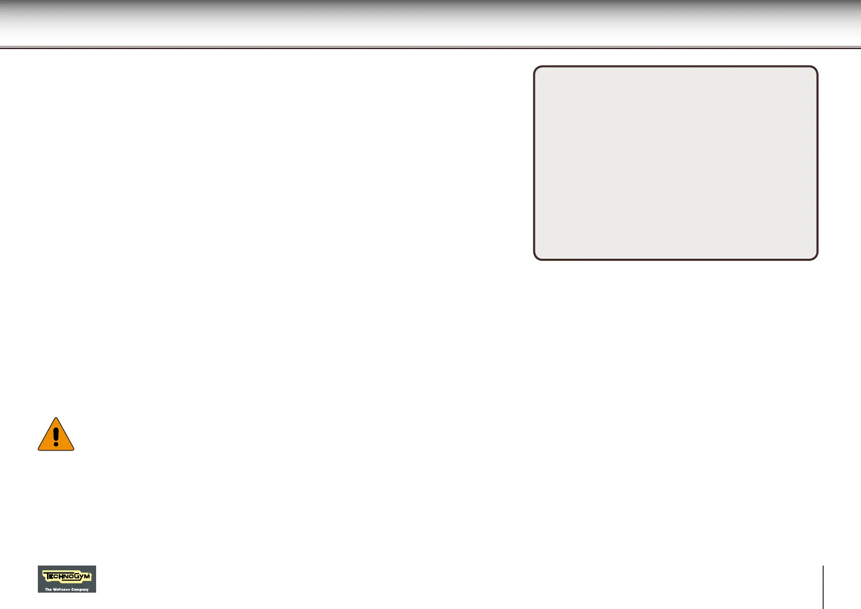 Any operations on the equipment carried out by persons not authorized by Technogym will invalidate the warranty.