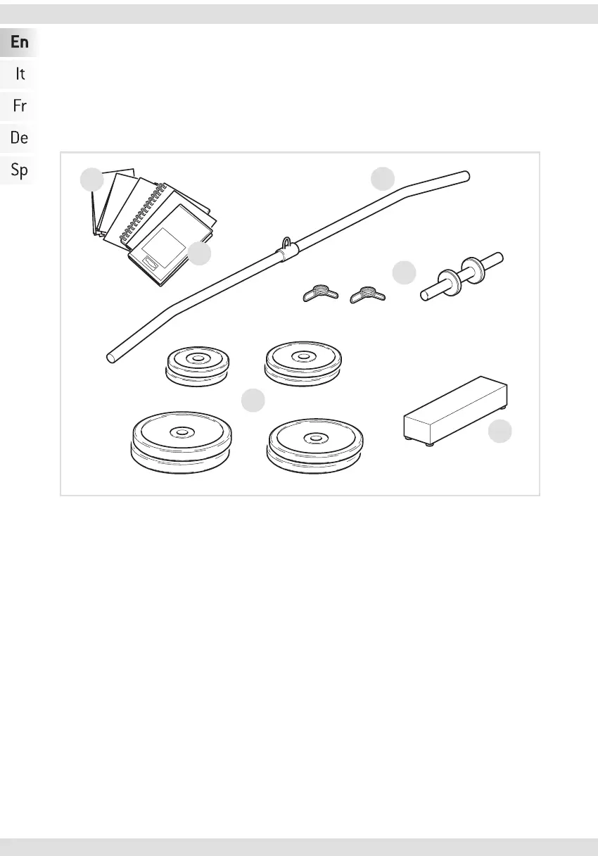 15 - rubber coated discs (10 kg , 5 kg, 2,5 kg, 1,25 kg)