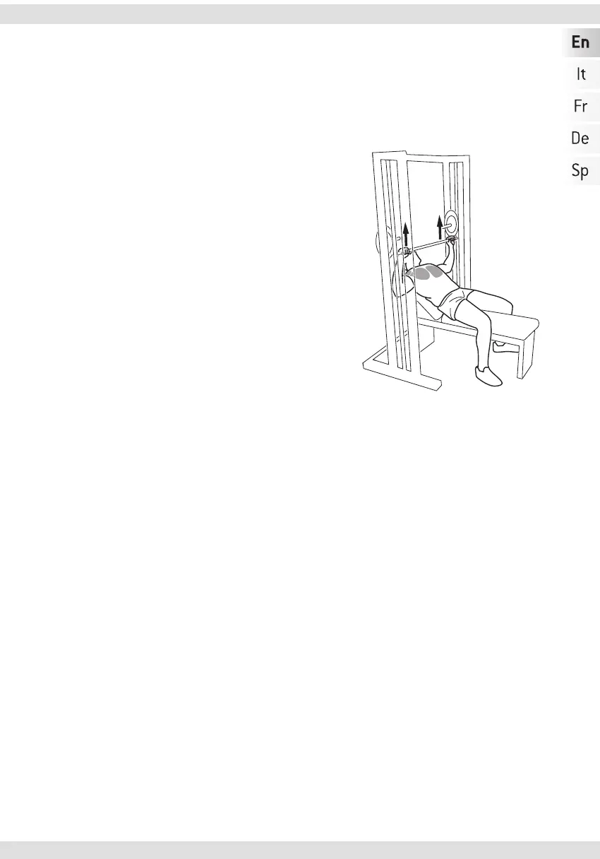 against the backrest and grasp the barbell