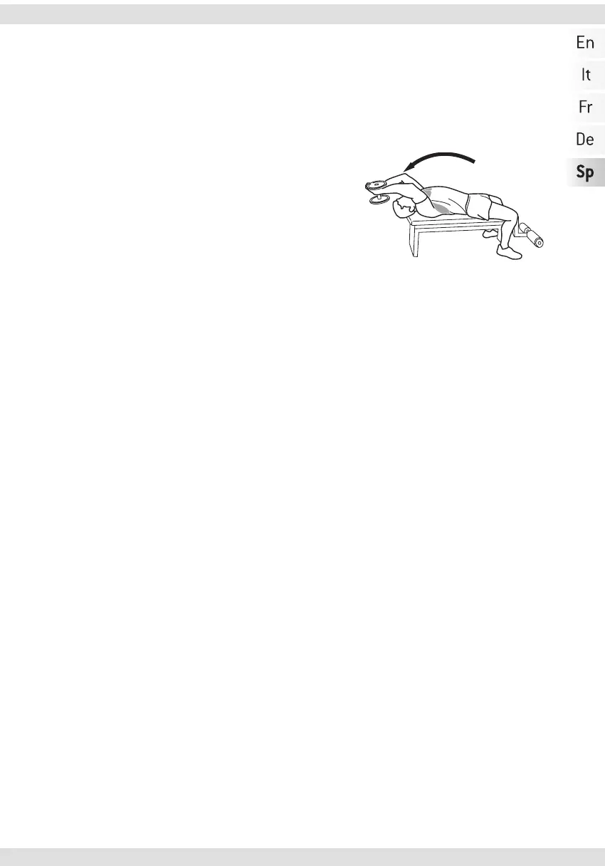 - sostenga las mancuernas con toma cruzada;