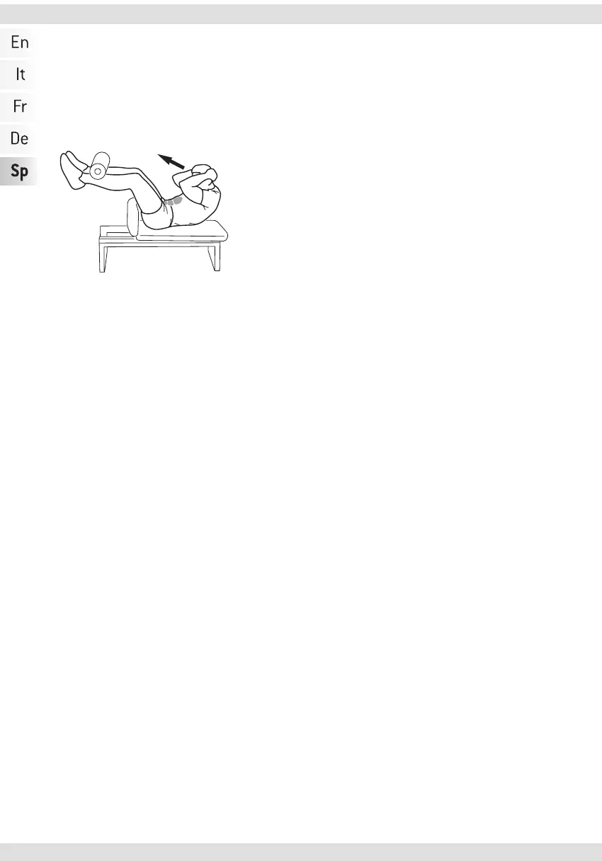 - túmbese sobre el banco y coloque los pies