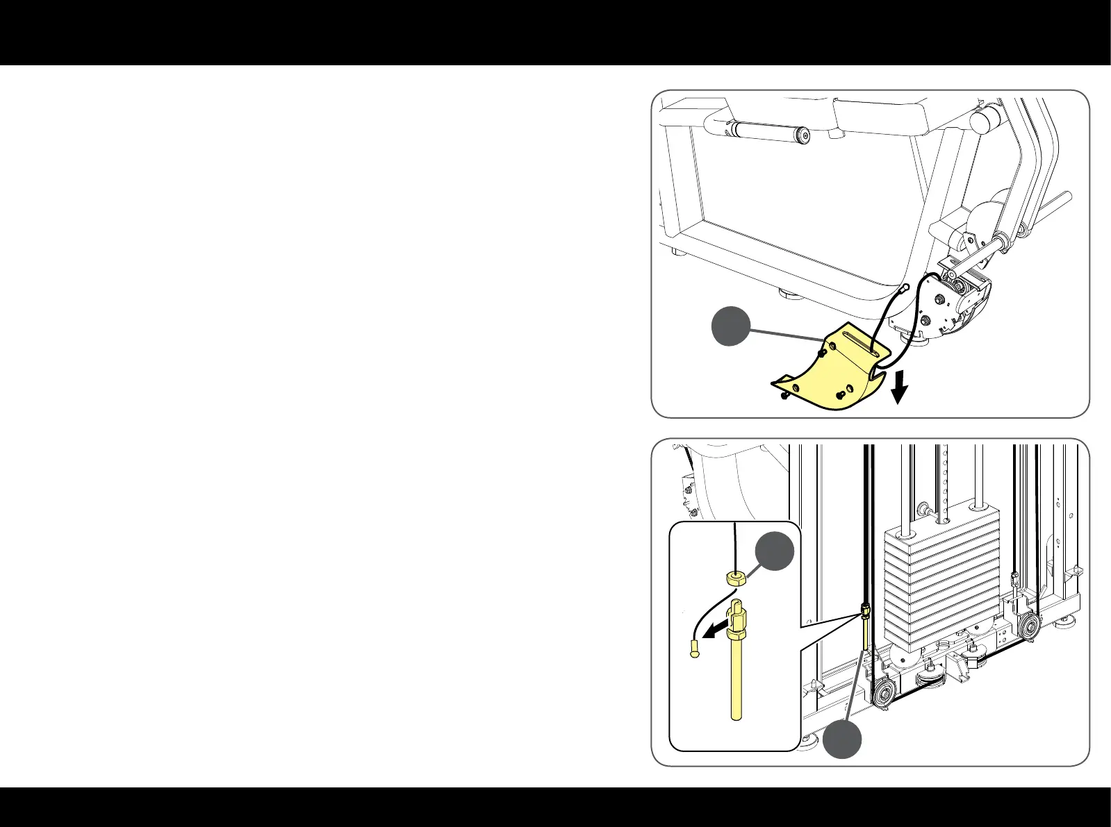 Remove the guard (E) with a 4 mm T spanner and slip the cable out of the slot.