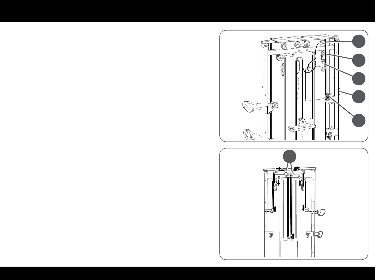 Retighten the central pulleys (M) and the crosspiece pulley.