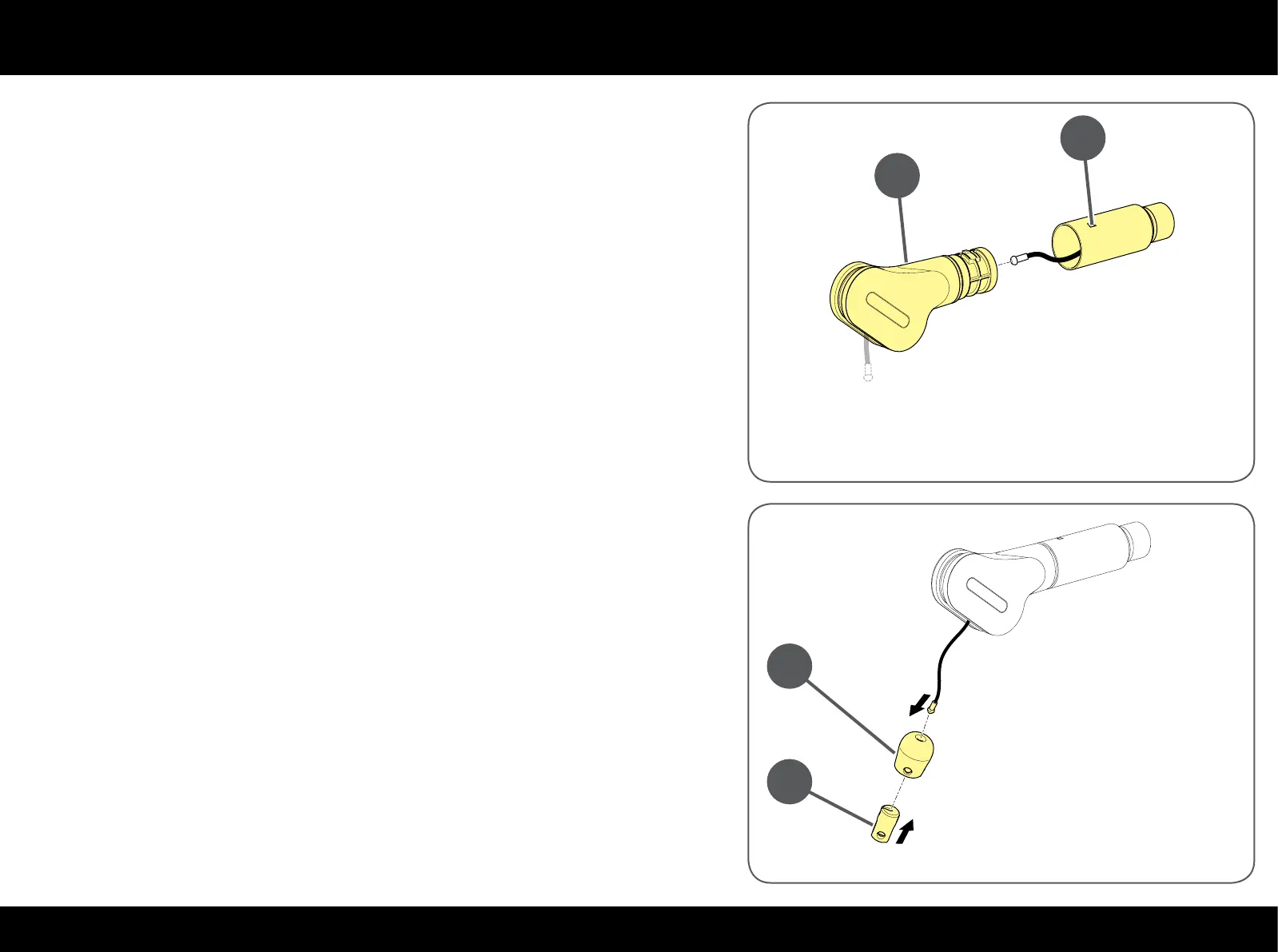 Insert the end of the cable in the bumper (B) and then in the bush (C).