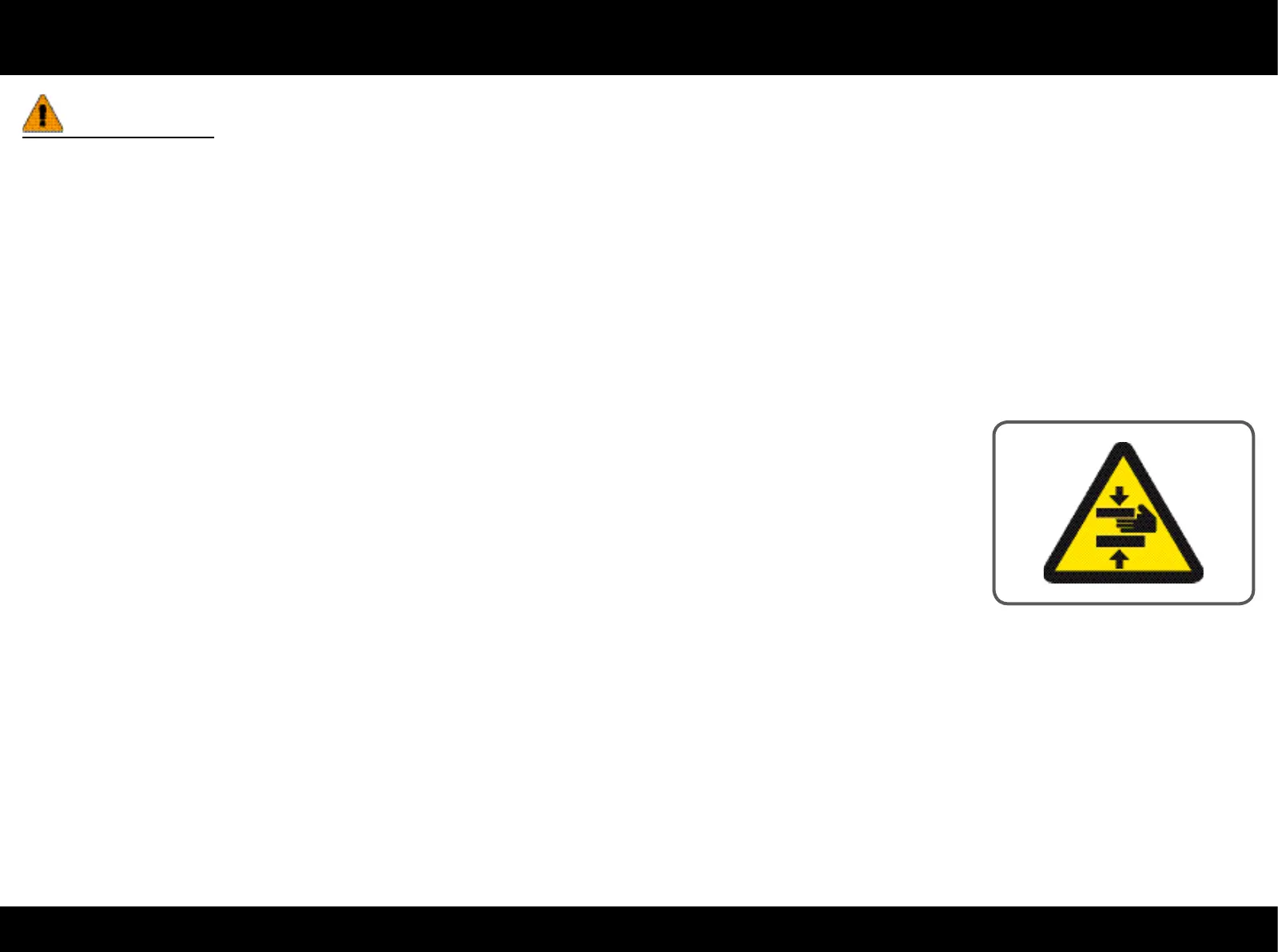 Pay particular attention to the parts of the equipment with labels indicating “BEWARE OF CRUSHING”.
