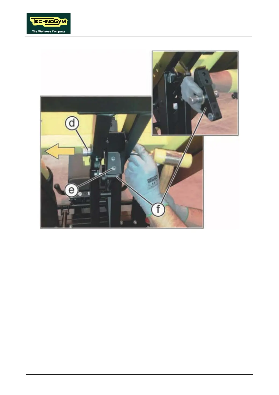 6. With a rubber hammer and a pin, remove the central pin (d).