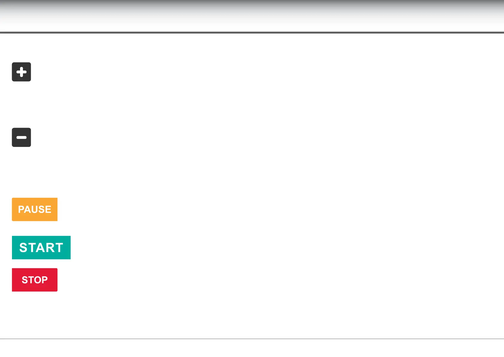Stops the exercise for a short pause. During the pause, all the control panel settings are blocked and the only keys enabled are the START