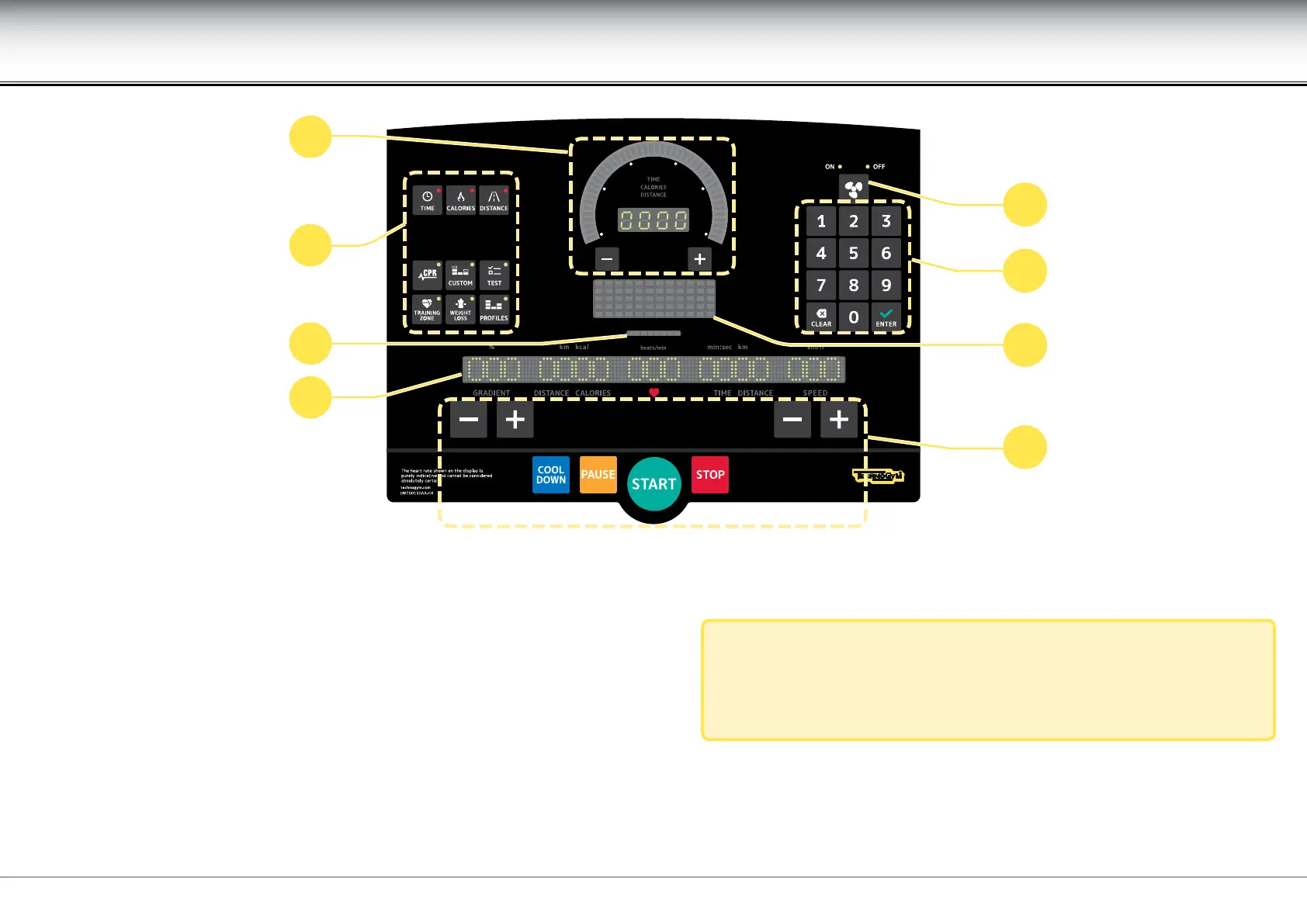A Function keys for workout or test selection. If the corresponding LED lights up, this key is active or the corresponding exercise is in progress.