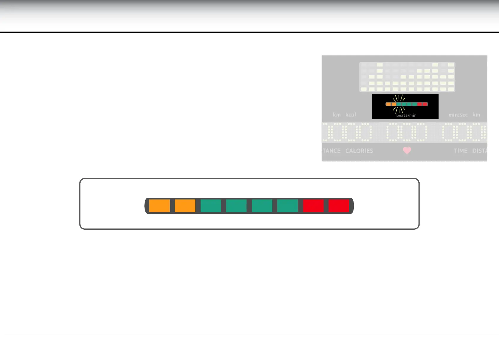 The rst two LEDs, coloured orange, signal a heart rate less than 60% of the theoretical maximum heart rate; the four central LEDs, coloured green, signal values