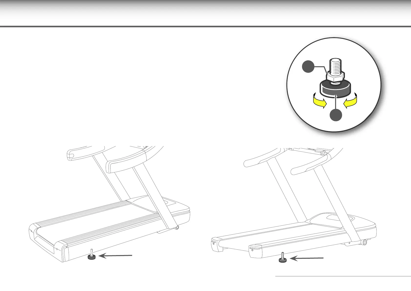 The equipment is levelled by adjusting the rear foot on the side shown in the illustration: