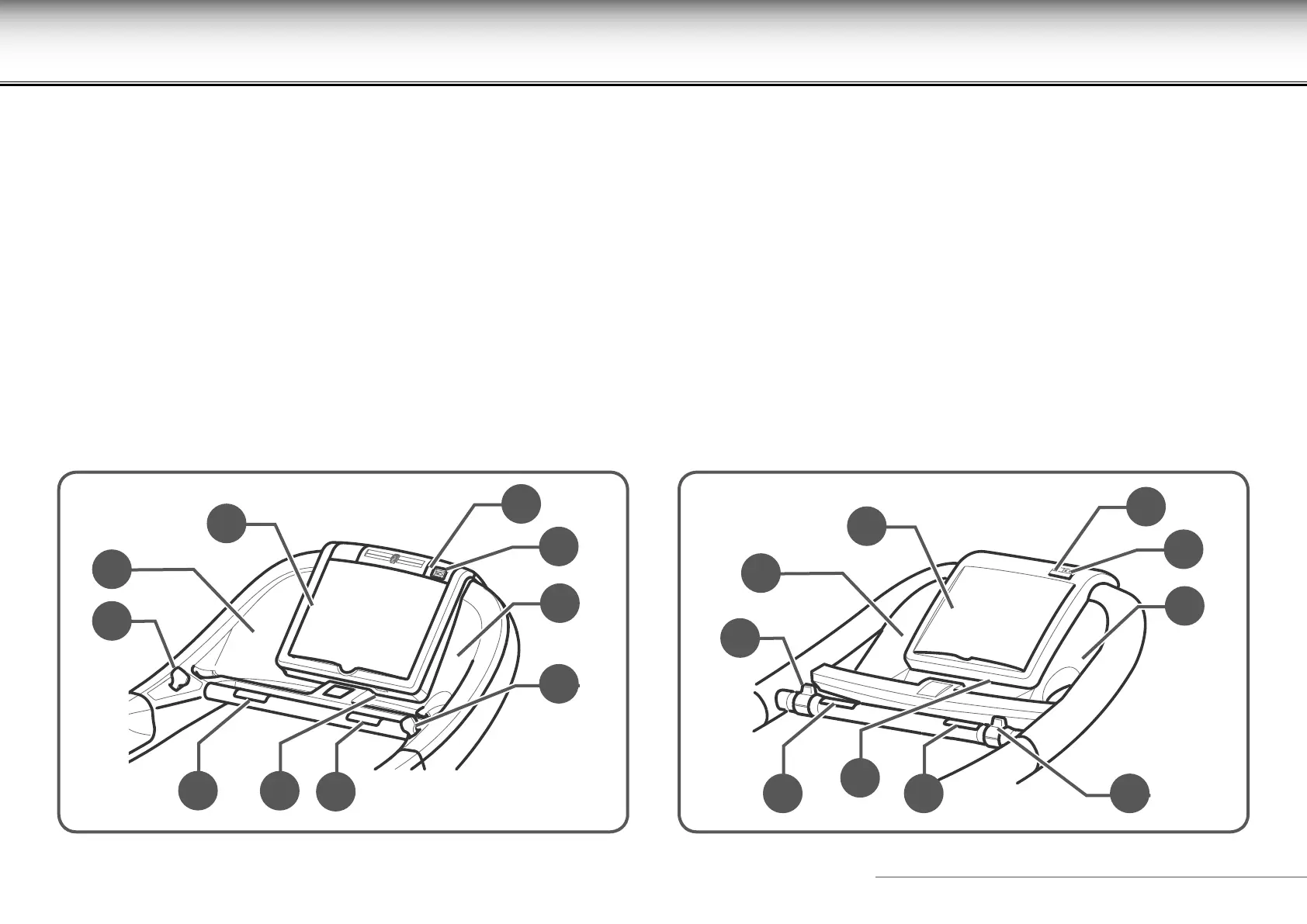 Fast Track control (G): for changing the treadmill speed and gradient during the exercise.