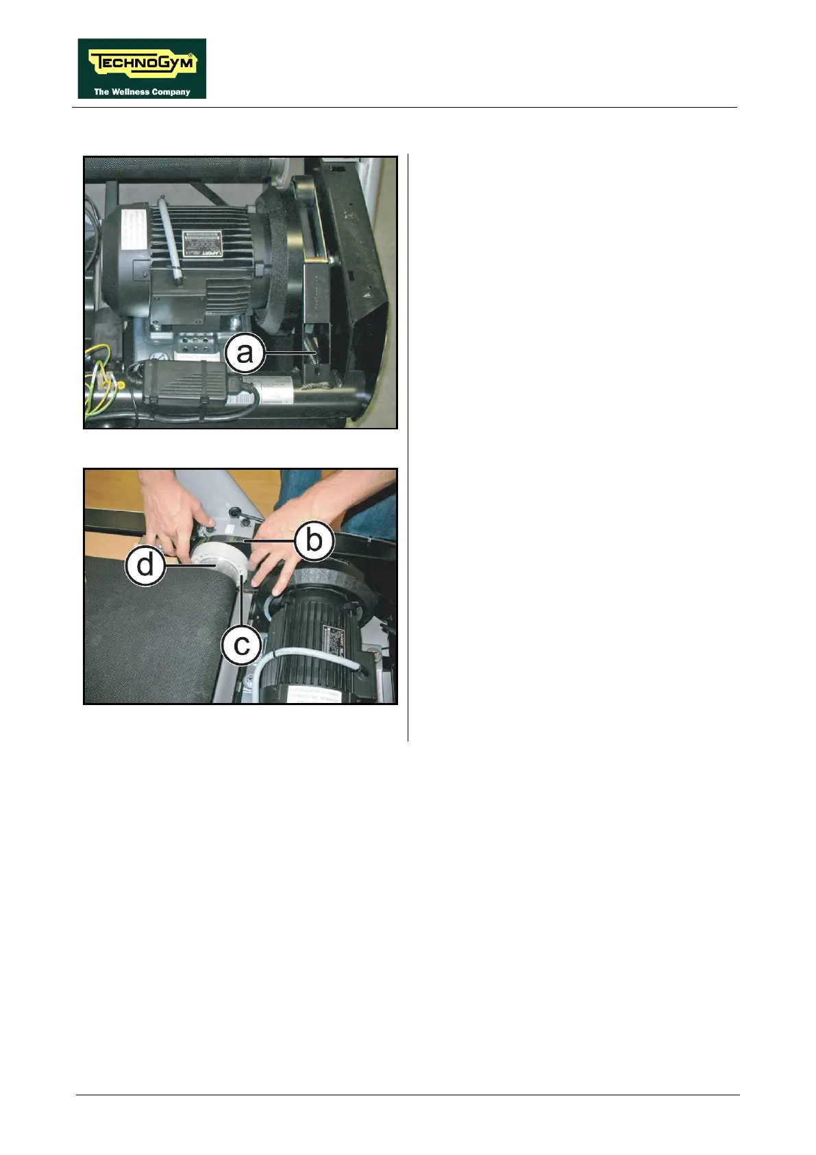 2. Remove the belt (b) from its pulley (c) and