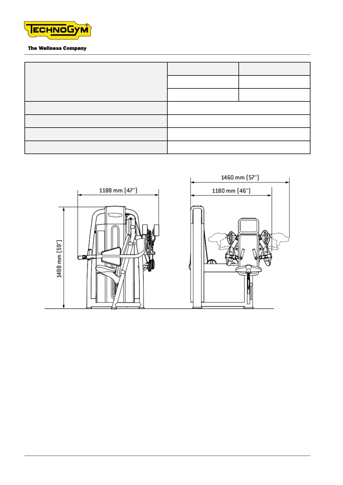 Maximum user weight 180 kg (397 lb)
