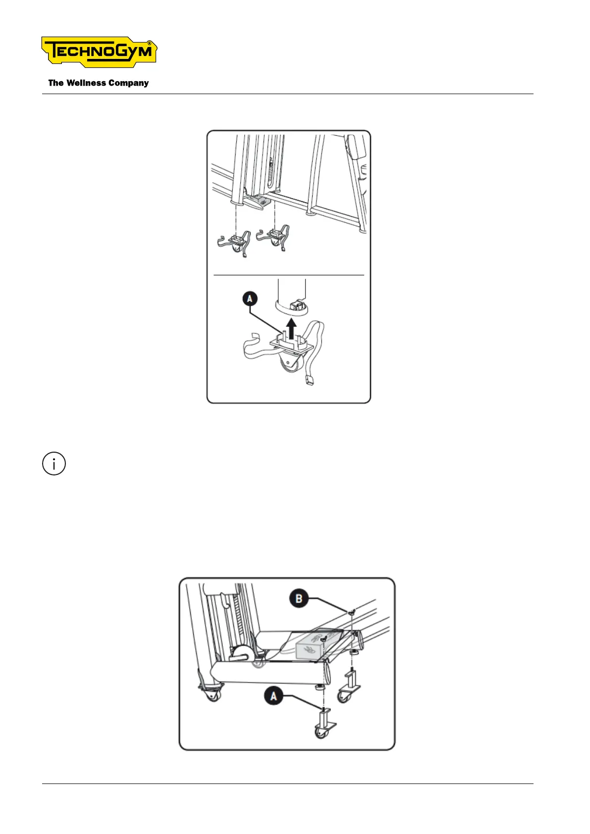 Proceeding in the same way, lift the equipment on platform side and insert the castors as below: