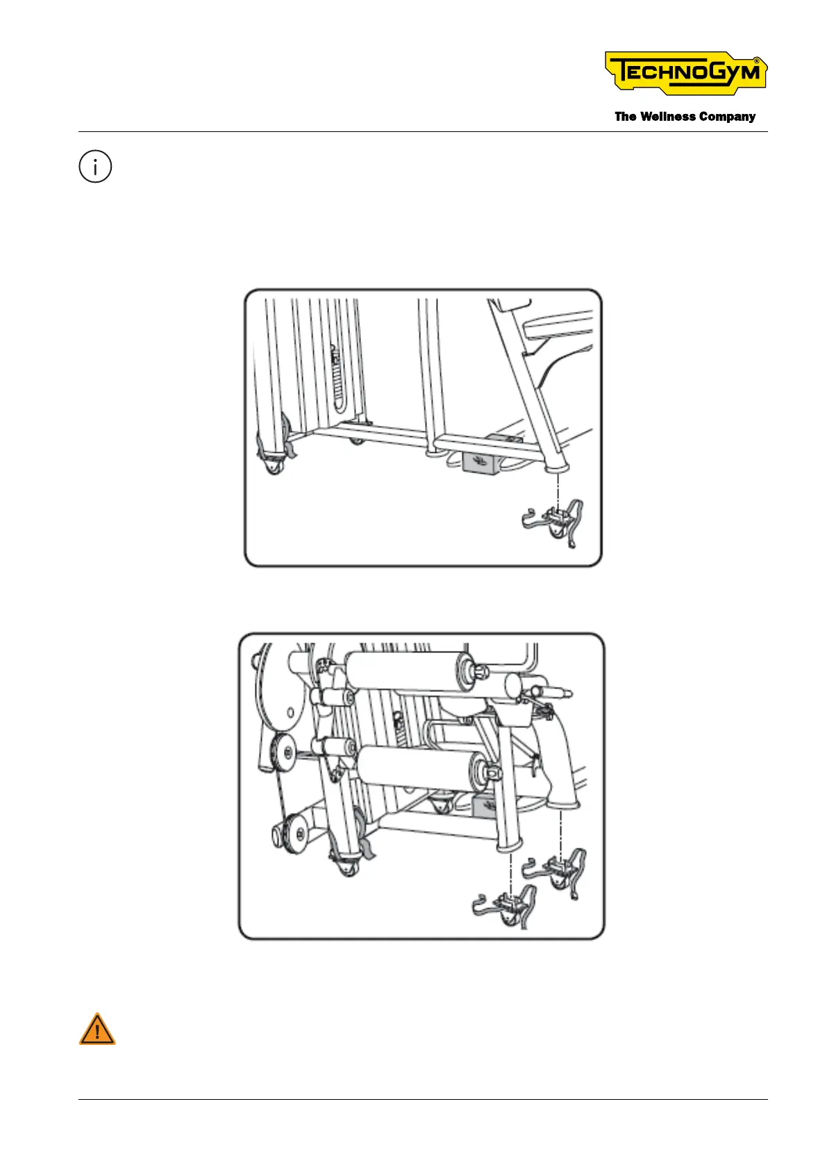 the equipment again, remove the safety wedges and place the wheels on the oor.