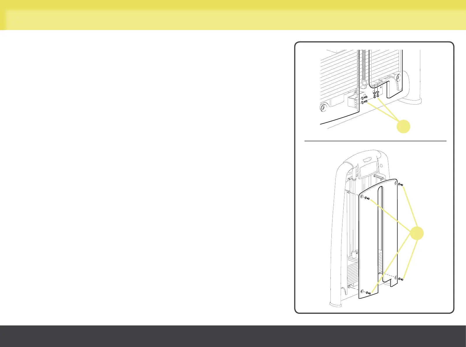 The front protective weight stack panel is fixed to the frame by eight screws.
