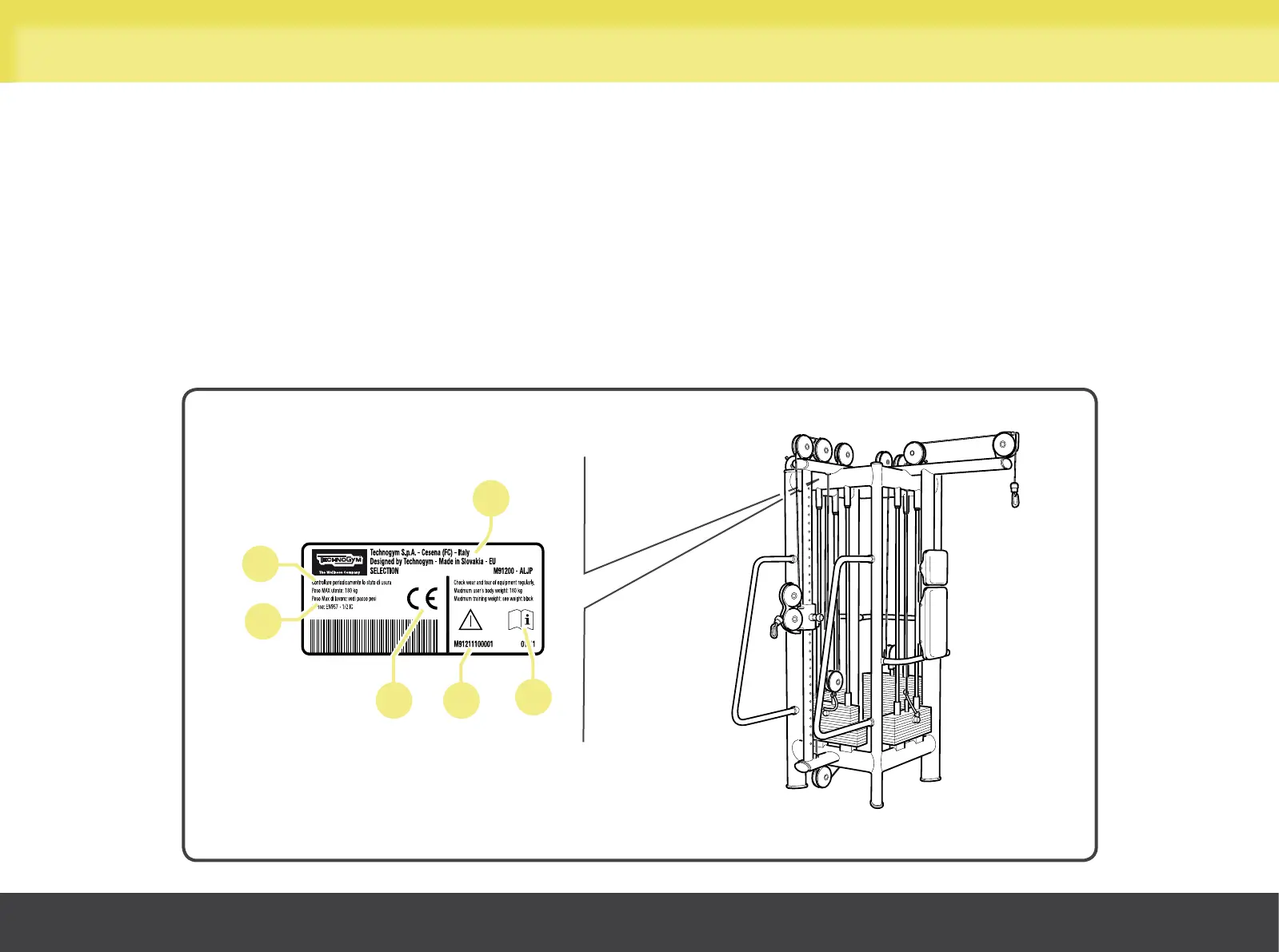 The equipment and manufacturer identification plate, fixed to the upper inside part of the frame, gives the following details: