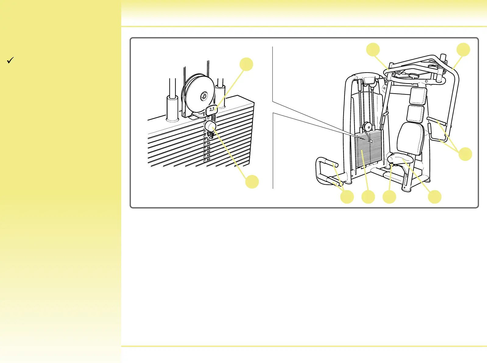A Seat: where the user sits to perform the exercise. Its position can be adjusted using the
